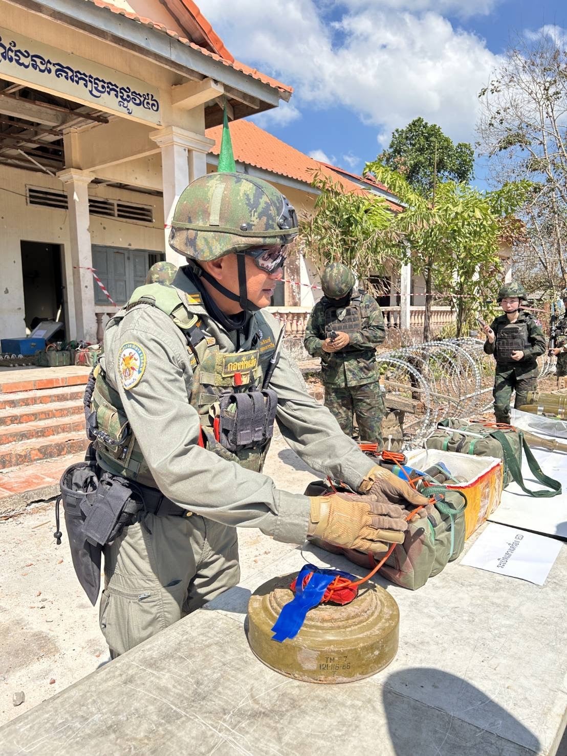 การที่ทางการกัมพูชาที่ออกมายืนยันผ่านแถลงการณ์ว่า คลังอาวุธดังกล่าวเป็นของฝ่ายกัมพูชาเอง เป็นเรื่องที่สอดคล้องกับพยานหลักฐาน ภาพถ่าย และข้อมูลที่ฝ่ายไทยรวบรวมได้จากพื้นที่ ซึ่งแสดงให้เห็นอย่างชัดเจนถึงการครอบครองและการกระทำที่ละเมิดพันธกรณีภายใต้อนุสัญญาออตตาวาอย่างไม่อาจปฏิเสธได้ กองทัพเรือขอย้ำว่า การปฏิบัติของฝ่ายไทยเป็นไปเพื่อความปลอดภัยของกำลังพลและประชาชนในพื้นที่ชายแดน และสอดคล้องกับหลักกฎหมายระหว่างประเทศ ตรงกันข้าม การมีอยู่ของทุ่นระเบิดสังหารและอาวุธต้องห้ามในพื้นที่ใกล้แนวชายแดน กลับเป็นปัจจัยที่บ่อนทำลายความเชื่อมั่น และขัดต่อเจตนารมณ์ของผลการประชุมคณะกรรมการชายแดนทั่วไป (GBC) วาระพิเศษ ครั้งที่ 3 อย่างร้ายแรง