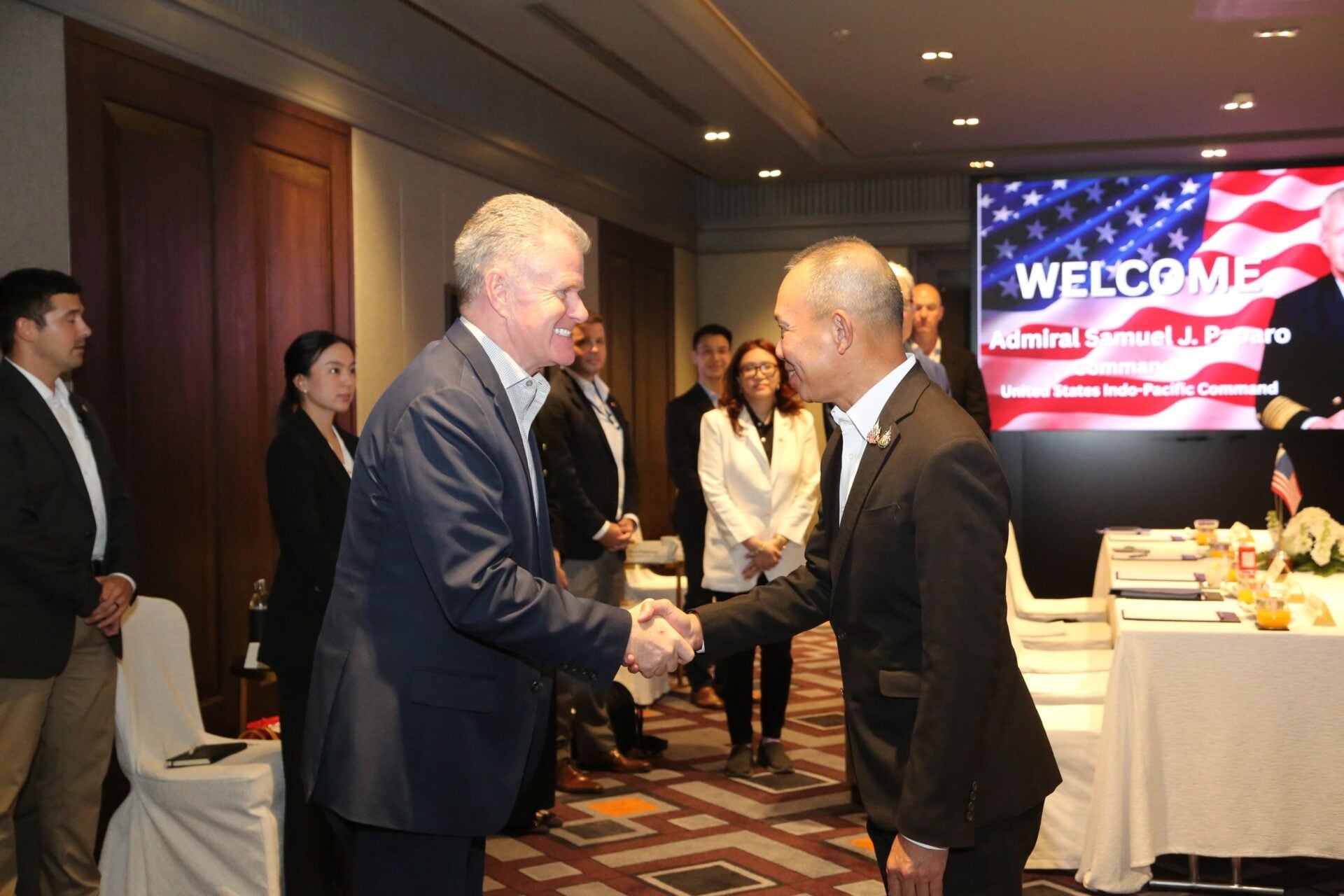 นอกจากนี้ ได้มีการแลกเปลี่ยนมุมมองต่อสถานการณ์ความมั่นคงในภูมิภาค และประเด็นระหว่างประเทศ โดยไทยยืนยันการแก้ไขปัญหาด้วยสันติวิธี เคารพกฎหมายระหว่างประเทศ และสนับสนุนบทบาทของอาเซียนในการส่งเสริมเสถียรภาพ และสันติภาพในภูมิภาค ทั้งนี้ผู้บัญชาการกองกำลังสหรัฐฯ ภาคพื้นอินโด-แปซิฟิก ได้กล่าวขอบคุณประเทศไทยที่ดำเนินการอย่างอดทนอดกลั้นภายใต้สถานการณ์การกดดันในห้วงที่ผ่านมา