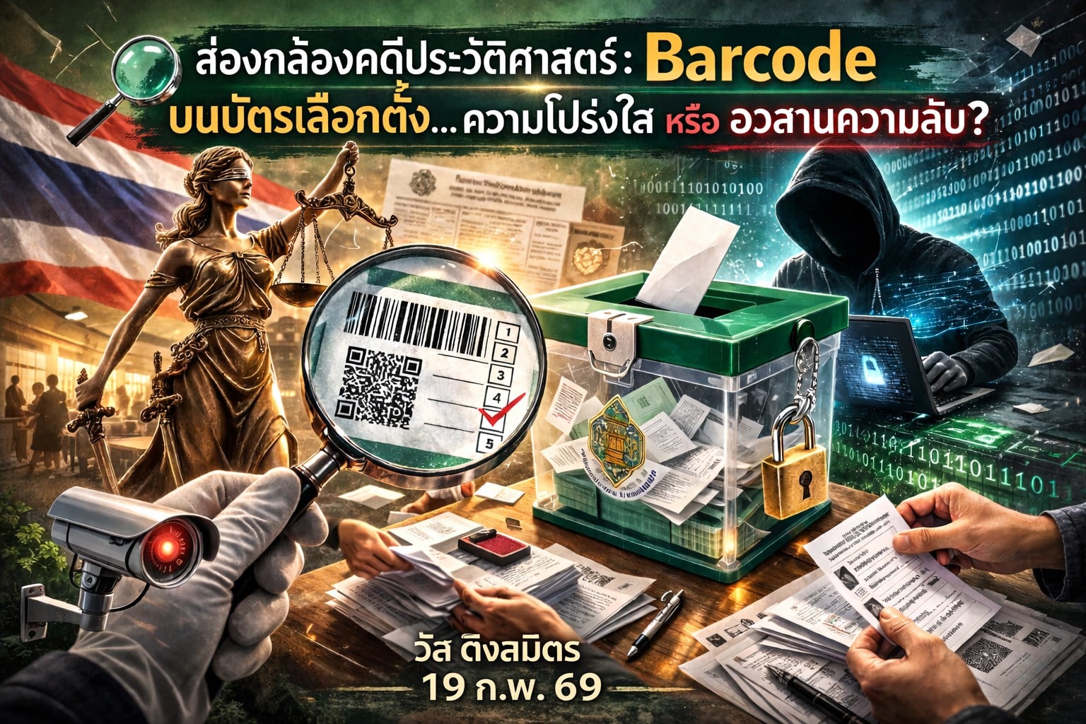 19 ก.พ.2569 - นายวัส ติงสมิตร นักวิชาการอิสระ อดีตผู้พิพากษาอาวุโสในศาลฎีกา และอดีตประธานกรรมการสิทธิมนุษยชนแห่งชาติ (กสม.) โพสต์เฟซบุ๊กในหัวข้อ “ส่องกล้องคดีประวัติศาสตร์: Barcode บนบัตรเลือกตั้ง... ความโปร่งใส หรือ อวสานความลับ?”