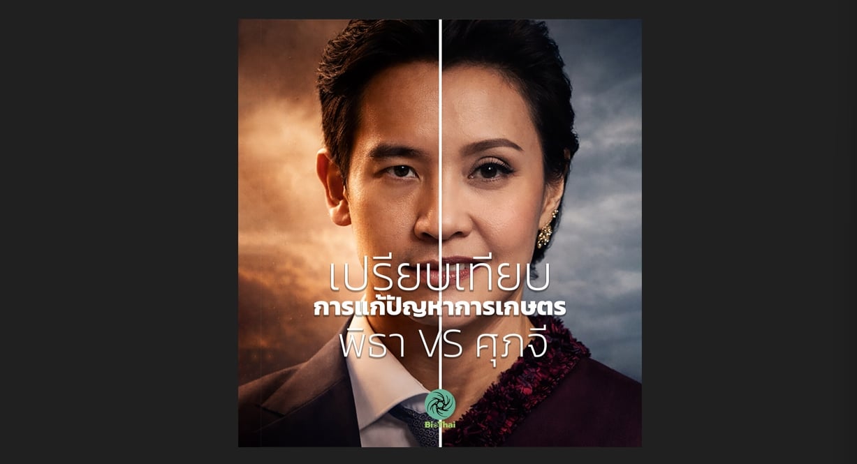 10 มี.ค.2569-เพจ BIOTHAI โพสต์บทวิเคราะห์นโยบายด้านการเกษตรว่า พิธา ลิ้มเจริญรัตน์ และศุภจี สุธรรมพันธุ์ เป็นนักการเมืองต่างเส้นทาง 2 คนที่มีบทบาทโดดเด่น แม้มีแบคกราวด์แตกต่างกัน แต่ทั้งสองคนได้นำเสนอแนวความคิดเกี่ยวกับการแก้ปัญหาเกษตรกรรมที่น่าสนใจ สะท้อน 2 ขั้วของการหาทางออกเกษตรกรรมไทย