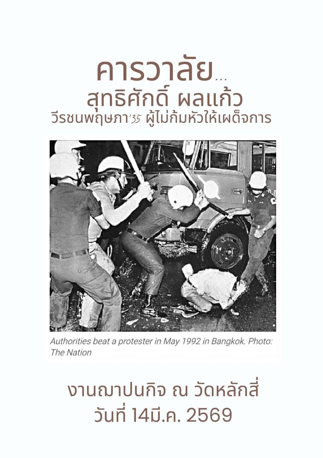 อาลัย 'สุทธิศักดิ์ ผลแก้ว' สัญลักษณ์ผู้ถูกกระทำในเหตุการณ์พฤษภาทมิฬ ที่ไม่ยอมก้มหัวให้เผด็จการ