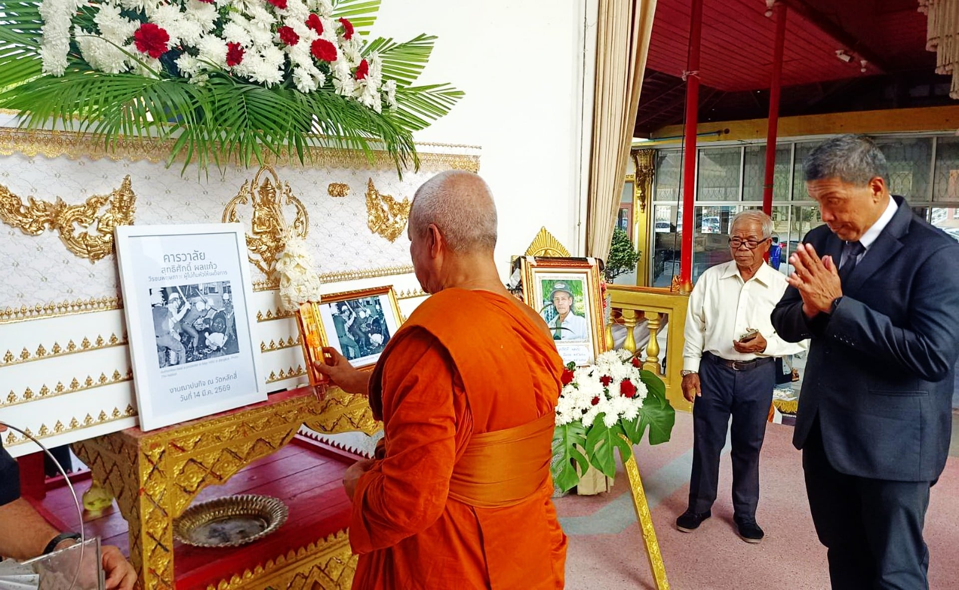 15มี.ค.2569 - ที่วัดหลักสี่ เขตบางเขน กรุงเทพฯ เวลา 17.00 น.วันที่ 14 มี.ค. 2569 นายชัชชาติ สิทธิพันธุ์ ผู้ว่าราชการกรุงเทพมหานคร (กทม.) เป็นประธานในพิธีฌาปนกิจศพ นายสุทธิศักดิ์ ผลแก้ว วีรชนเดือนพฤษภา’ 35 เสียชีวิต เนื่องจาก ระบบหายใจไหลเวียนโลหิตล้มเหลว เมื่อเวลา 07.03 วันที่ 10 มี.ค. 2569 โดยมี ดร.ปริญญา เทวานฤมิตรกุล ประธานมูลนิธิพฤษภาประชาธรรม นายปรีดา เตียสุวรรณ์ ที่ปรึกษาคณะกรรมการญาติวีรชนพฤษภา’35 ดร.สุริยะใส กตะศิลา รองอธิการบดี มหาวิทยาลัยรังสิต นายจตุพร พรหมพันธุ์ นักสู้เดือนพฤษภา’35 ร่วมทอดผ้าบังสุกุล และนายอดุลย์ เขียวบริบูรณ์ ประธานคณะกรรมการญาติวีรชนพฤษภา’35 รวมทั้งญาติวีรชนฯ ร่วมงาน