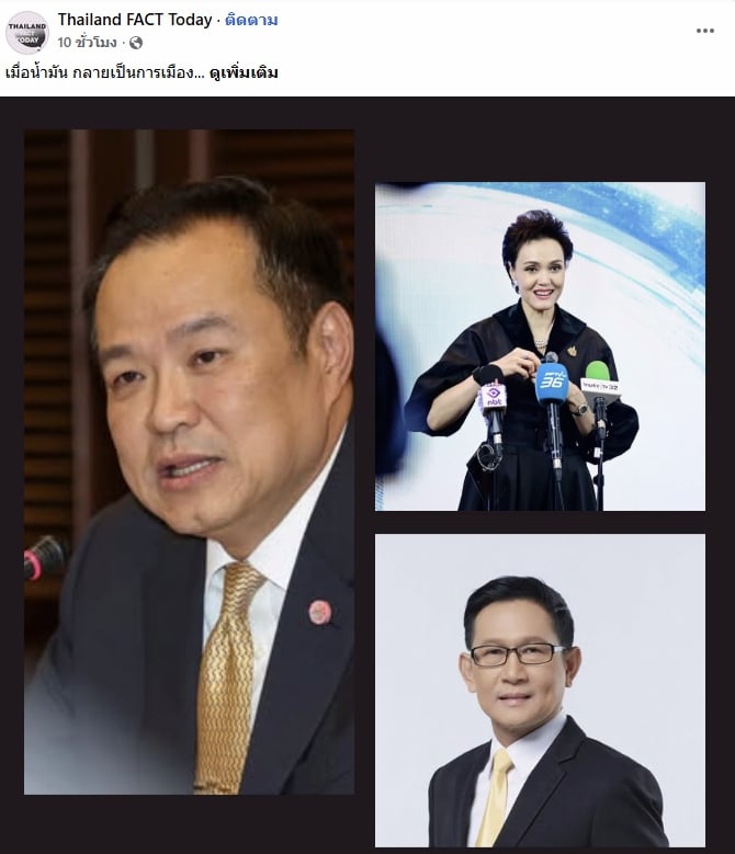 19 มีนาคม 2569 - เพจเฟซบุ๊ก Thailand FACT Today ซึ่งผู้ติดตาม 5.7 แสนราย ในฐานะฝ่ายสนับสนุนรัฐบาล โพสต์ข้อความว่า เมื่อน้ำมัน กลายเป็นการเมือง แอดเลือกอนุทินเข้ามา แต่แอดไม่ได้เลือกทรัมป์ เข้ามามีอำนาจ แต่กลายเป็นว่า แอด และหลายคน กำลังถูกด้อยค่าเพราะเลือกอนุทิน ทั้งที่ปัญหามาจากทรัมป์