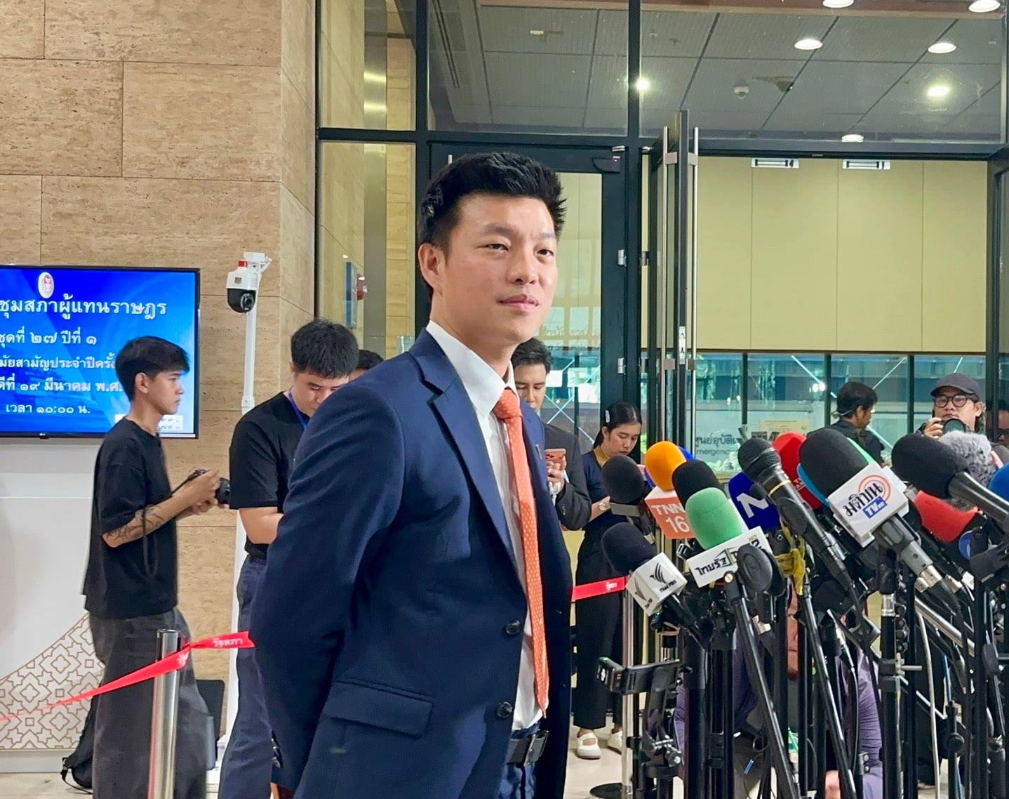 19 มี.ค.2569 - ที่รัฐสภา นายณัฐพงษ์ เรืองปัญญาวุฒิ หัวหน้าและแคนดิเดตนายกรัฐมนตรี พรรคประชาชน ให้สัมภาษณ์ถึงกรณีหลายฝ่ายมองว่าฝ่ายค้านไม่ได้ออกมาแสดงท่าทีตรวจสอบเรื่องวิกฤตพลังงานและราคาน้ำมันเท่าที่ควรว่า จริงๆ ต้องบอกว่าฝ่ายค้านอย่างเป็นทางการยังไม่ได้เริ่มขึ้น เพราะขณะนี้ยังไม่ได้โหวตนายกรัฐมนตรี อย่างไรก็ตามในฐานะสมาชิกสภาผู้แทนราษฎร ขณะนี้มีการหารือกันแล้วว่าอาจจะมีการเสนอญัตติด่วนด้วยวาจา ในการที่จะหารือในที่ประชุมสภาในวันนี้ เพื่อหาทางออกเรื่องดังกล่าว และเชื่อว่าฝ่ายเสียงข้างมากหรือฝ่ายรัฐบาล น่าจะให้โอกาสและให้พื้นที่กับพวกเราในการอภิปรายและเสนอแนะไปยังรัฐบาลรักษาการ ซึ่งตนคิดว่าสิ่งที่มีความสำคัญในขณะนี้พอๆกับเรื่องราคาน้ำมันคือเรื่องของสถานการณ์การขาดแคลนน้ำมัน โดยเฉพาะอย่างยิ่งน้ำมันสำเร็จรูป ซึ่งในส่วนของฝ่ายรัฐบาลเองดูเหมือนจะยังให้คำตอบไม่ชัดว่าตกลงแล้วน้ำมันหายไปไหน ใครที่เป็นคนกักตุน และทราบมาว่าวันนี้ฝ่ายรัฐบาลจะมีการเชิญผู้ประกอบการต่างๆ ที่เกี่ยวข้องกับซัพพลายเชนมาหารือ ตนคิดว่าสิ่งที่ทำได้ง่ายที่สุด เพื่อกอบกู้ความเชื่อมั่นของประชาชนกลับมา คือการเปิดเผยข้อมูลให้มีความโปร่งใส