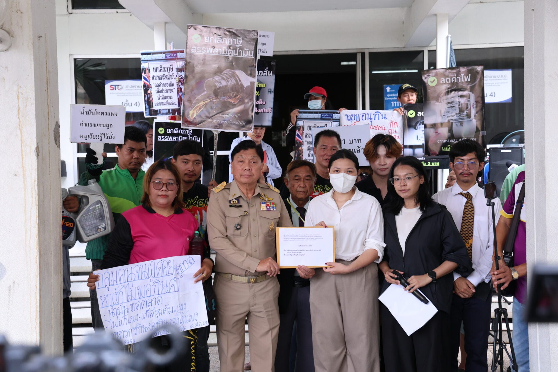 23 มี.ค. 2569 – ที่ศูนย์รับเรื่องราวร้องทุกข์ทำเนียบรัฐบาล กลุ่มภาคประชาสังคม 14 องค์กร นำโดยนายสมยศ พฤกษาเกษมสุข นายธัชพงศ์ แกดำ ยื่นหนังสือถึง นายอนุทิน ชาญวีรกูล นายกรัฐมนตรีและรมว. มหาดไทย เพื่อขอให้มีมาตรการเร่งด่วนในการแก้วิกฤตพลังงาน ลดราคาน้ำมัน ตรึงราคาแก๊ส ลดค่าไฟและคุมราคาสินค้า รัฐบาลเกี่ยวกับวิกฤตพลังงานที่เกิดขึ้น โดยมีการนำเอาป้ายข้อความและป้ายไวนิลมาชู แสดงออกถึงข้อเรียกร้อง