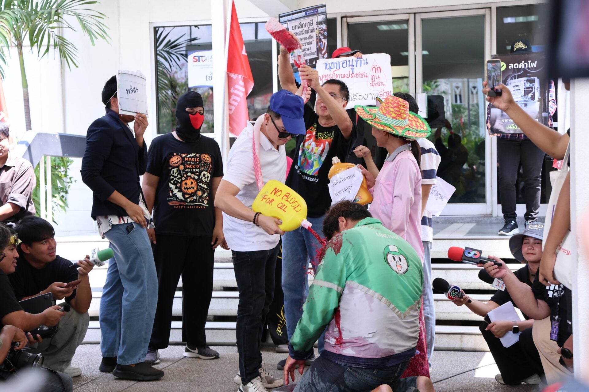 อย่างไรก็ตาม ภายหลังจากมีการยื่นหนังสือ ทางตัวแทนได้มีการแสดงละครเพื่อจำลองถึงสถานการณ์ที่ประชาชน ต้องเผชิญในขณะที่ประชาชนไปซื้อน้ำมันที่ปั้ม สะท้อนสิ่งที่นายอนุทินเคยระบุว่า น้ำมันขาดแคลนเกิดจากกรประชาชนตื่นตระหนก แห่กักตุนน้ำมัน และยังบอกว่าไม่มีไอ้โม่ง.