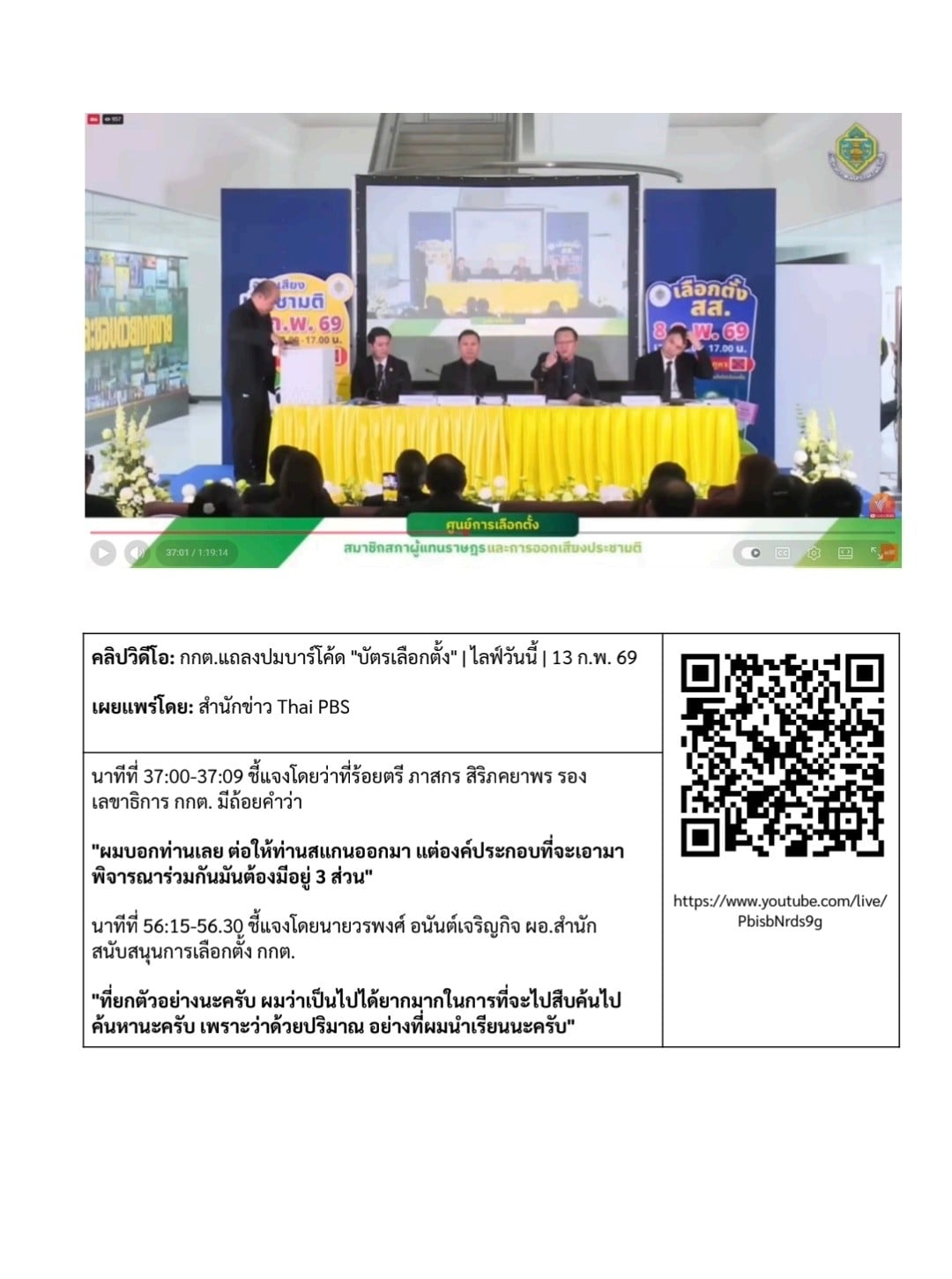 24 มีนาคม 2569 – นายสมชัย ศรีสุทธิยากร อดีตกรรมการการเลือกตั้ง (กกต.) โพสต์ข้อความผ่านเฟซบุ๊กว่า แจ้งผู้สื่อข่าว คณะผู้เชี่ยวชาญทางเทคโนโลยี ที่ถูก กกต. แจ้งความดำเนินคดีข้อหาขัดขวางการเลือกตั้ง ยุยงปลุกปั่นให้เกิดความไม่สงบในบ้านเมือง เป็นอั้งยี่ ซ่องโจร มีกำหนดนำข้อมูลที่พิสูจน์ได้แบบเป็นวิทยาศาสตร์ ว่า บัตรเลือกตั้งที่มีบาร์โค้ด สามารถสืบย้อนไปยังตัวผู้เลือกได้ ส่งมอบเป็นพยานหลักฐานต่อผู้ตรวจการแผ่นดินเพื่อนำส่งต่อ ศาลรัฐธรรมนูญ