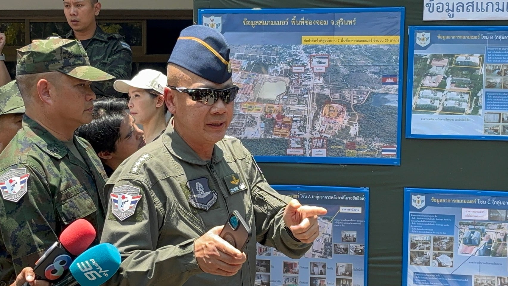 7 เมษายน 2569 - พลอากาศเอก ประภาส สอนใจดี ผู้อำนวยการศูนย์แถลงข่าวร่วมสถานการณ์ไทย – กัมพูชา หรือ JIC กล่าวภายหลังพาสื่อมวลชน ทั้งสื่อไทย และสื่อต่างประเทศ ลงพื้นที่ติดตามสถานการณ์ชายแดนไทย-กัมพูชา และประเด็นศูนย์สแกมอาชญากรรมออนไลน์ข้ามชาติ ในพื้นที่โอร์เสม็ด-ช่องจอม ต.ด่าน อ.กาบเชิง จ.สุรินทร์ ว่า ศูนย์ฯ ได้นำสื่อมวลชนลงพื้นที่ฐานสแกมเมอร์ที่โอร์เสม็ด เป็นครั้งที่ 3 เพื่อมาดูสถานที่จริง โดยครั้งนี้ได้พาไปดูห้องที่เป็นห้องจำคุก เพื่อป้องกันไม่ให้คนหนีออกจากพื้นที่ดังกล่าว โดยมีการตั้งกฎในการลงโทษ นอกจากนี้ยังมีที่ตั้งของโรงพยาบาล ซึ่งภาพรวมเป็นลักษณะของเอ็นเทอร์เทนเมนต์คอมเพล็กซ์ ซึ่งถือเป็นเมืองที่มีขนาดใหญ่มาก รวมถึงมีบอสที่จะควบคุมบังคับบัญชาในพื้นที่