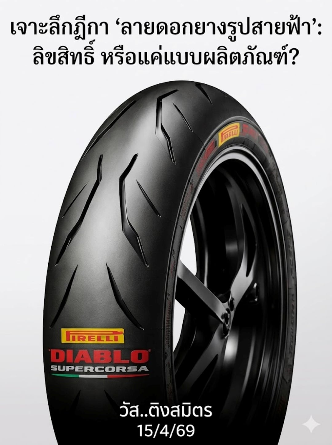 15 เม.ย.2569 - นายวัส ติงสมิตร นักวิชาการอิสระ และอดีตผู้พิพากษาอาวุโสในศาลฎีกา โพสต์เฟซบุ๊กในหัวข้อ “เจาะลึกฎีกา “ลายดอกยางรูปสายฟ้า”: ลิขสิทธิ์ หรือแค่แบบผลิตภัณฑ์?” ระบุว่า การต่อสู้ทางกฎหมายระหว่างบริษัทยักษ์ใหญ่ระดับโลกอย่าง "PIRELLI" (โจทก์) กับห้างหุ้นส่วนในไทย "P.RALLY" (จำเลย) ได้เดินมาถึงบทสรุปที่น่าสนใจยิ่งในศาลฎีกา โดยมีประเด็นหลักคือ "ลวดลายดอกยางรูปสายฟ้า" บนยางรถจักรยานยนต์รุ่นดังอย่าง DIABLO SUPERCORSA นั้น ควรได้รับความคุ้มครองในฐานะ "งานอันมีลิขสิทธิ์" หรือไม่?