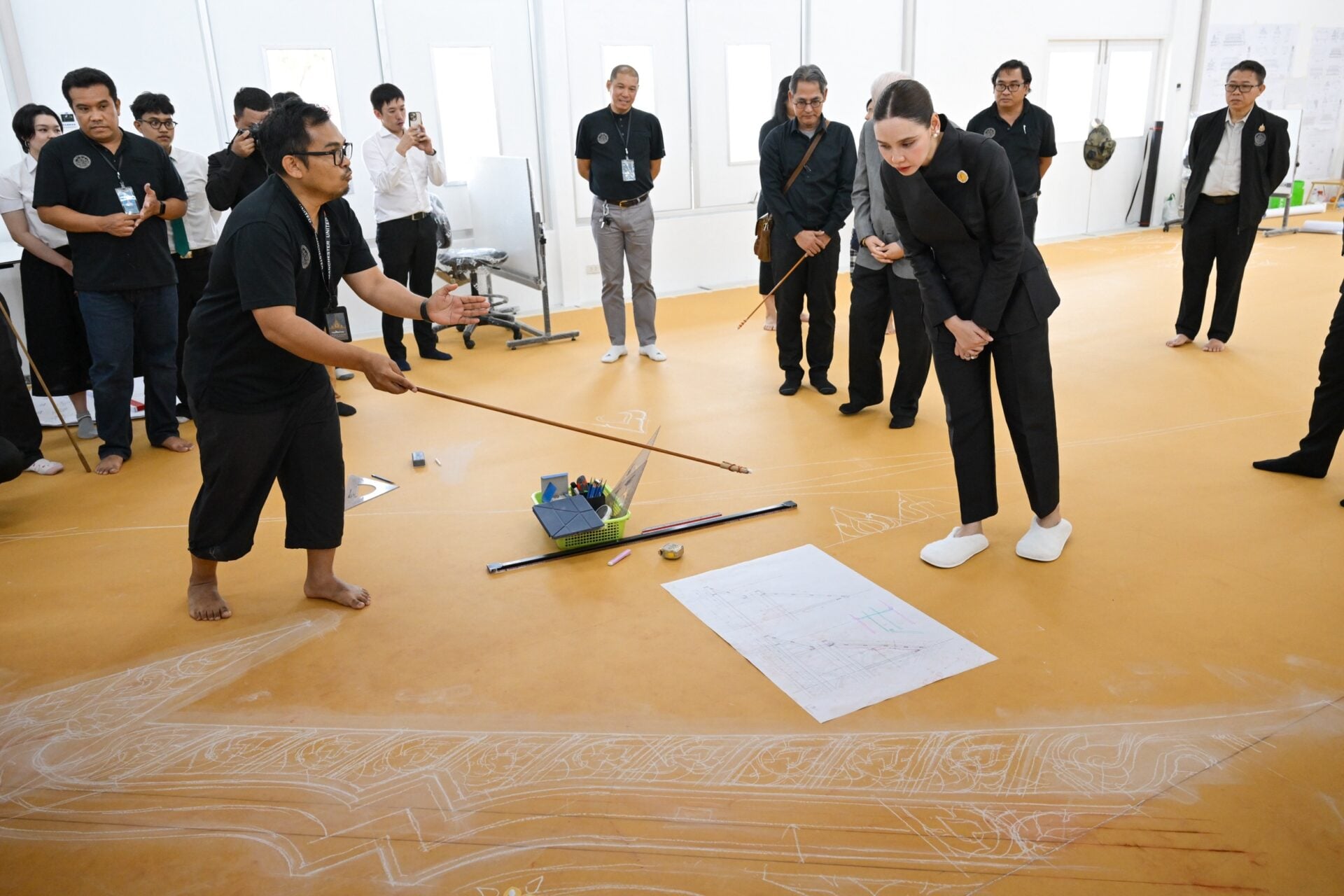 นายพนมบุตร จันทรโชติ อธิบดีกรมศิลปากร กล่าวว่า โครงการจัดสร้างพระเมรุมาศและสิ่งปลูกสร้างประกอบพระเมรุมาศในงานพระราชพิธีถวายพระเพลิงพระบรมศพสมเด็จพระนางเจ้าสิริกิติ์ พระบรมราชินีนาถ พระบรมราชชนนีพันปีหลวง เป็นครั้งแรกที่มีการจัดสร้างห้องทรงงานสมเด็จพระกนิษฐาธิราชเจ้า กรมสมเด็จพระเทพรัตนราชสุดา ฯ สยามบรมราชกุมารี องค์ที่ปรึกษาโครงการจัดสร้างพระเมรุมาศและสิ่งปลูกสร้างประกอบพระเมรุมาศ ในการเสด็จฯ ตรวจติดตามความคืบหน้าการดำเนินงานจัดสร้าง ส่วงานโครงสร้างพระเมรุมาศและพระที่นั่งทรงธรรม ซึ่งเป็นอาคารหลักพระบาทสมเด็จพระเจ้าอยู่หัว พระราชินี และพระบรมวงศานุวงศ์ประทับ อยู่ในขั้นตอนการทำพื้นหรือชาลา ซึ่งคืบหน้าไป30-40% ส่วนงานสถาปัตยกรรมไทยมีการขยายลวดลายเท่าจริง ซึ่งทีมสำนักสถาปัตยกรรมเข้าทำงานในโรงขยายแบบ 2 สัปดาห์แล้ว โดยตามแผนงานขยายแบบเท่าจริงจะแล้วเสร็จภายในเดือนสิงหาคม 2569 ก่อนนำให้ผู้รับจ้างดำเนินการจัดสร้าง ซึ่งมีโรงขยายแบบ โรงขยายแบบพระโกศจันทน์ โรงขยายแบบพระหีบจันทน์ และโรงทำสี จากนั้นจะรื้อโรงขยายแบบเพื่อเข้าสู่ขั้นตอนการปรับภูมิทัศน์พระเมรุมาศและสิ่งปลูกสร้างประกอบที่เกี่ยวข้องกับงานภูมิสถาปัตยกรรมพระเมรุมาศ ซึ่งจะมีสระโบกขรณี ภูมิจักรวาล และลวดลายผ้าต่างๆ อย่างไรก็ตาม สำนักสถาปัตยกรรมเตรียมเรียกประชุมบริษัทผู้รับจ้างดำเนินงานจัดสร้างในส่วนงานต่างๆ ทั้งหมด เพื่อกำชับแผนงานการก่อสร้างให้เป็นไปตามกำหนดเวลา ในการตรวจความคืบหน้าการจัดสร้างพระเมรุมาศครั้งนี้ รมว.วัฒนธรรม มอบนโยบายให้เข้มงวดเรื่องความปลอดภัยในการก่อสร้างอย่างสูงสุด