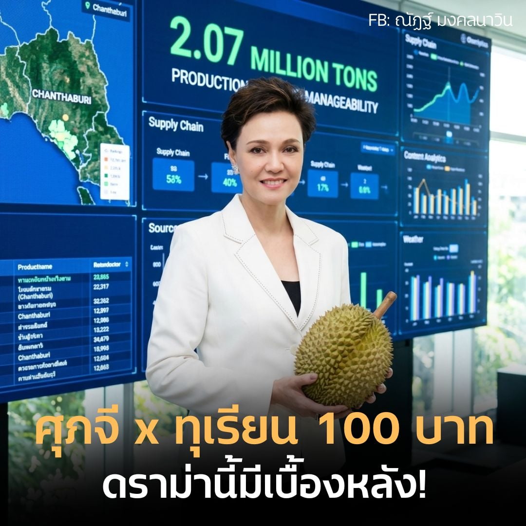 30 เม.ย.2569 - ณัฏฐ์ มงคลนาวิน นักวิเคราะห์ข้อมูลในยุทธศาสตร์สังคม โพสต์เฟซบุ๊กระบุว่า ในช่วงสัปดาห์ที่ผ่านมา ไม่มีกระแสไหนจะร้อนแรงไปกว่าดรามา "ทุเรียนลูกละ 100 บาท" จากแคมเปญกระตุ้นยอดขายผ่าน Live Commerce ในยุคที่คุณศุภจี สุธรรมพันธุ์ รองนายกฯ และ รมว.พาณิชย์